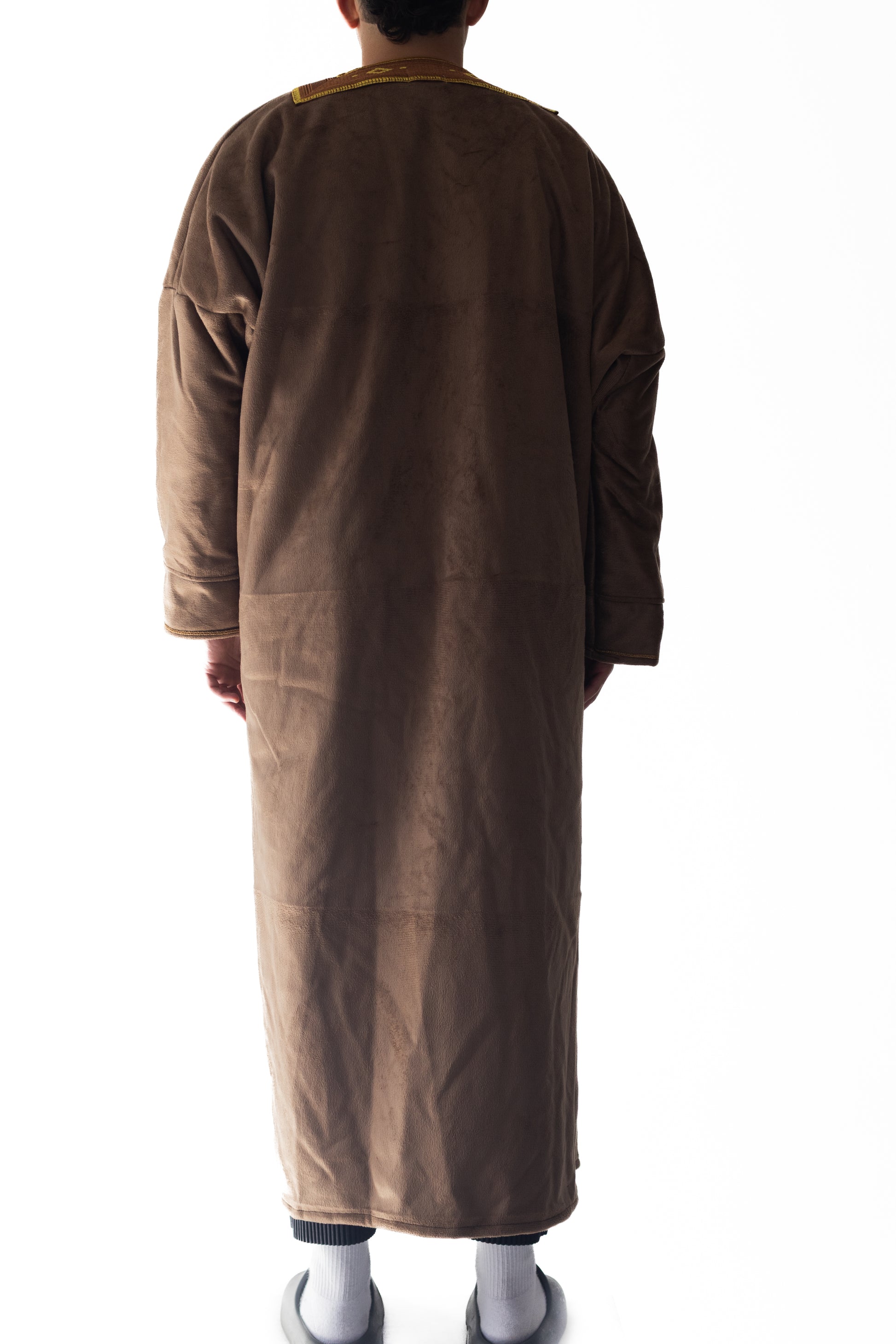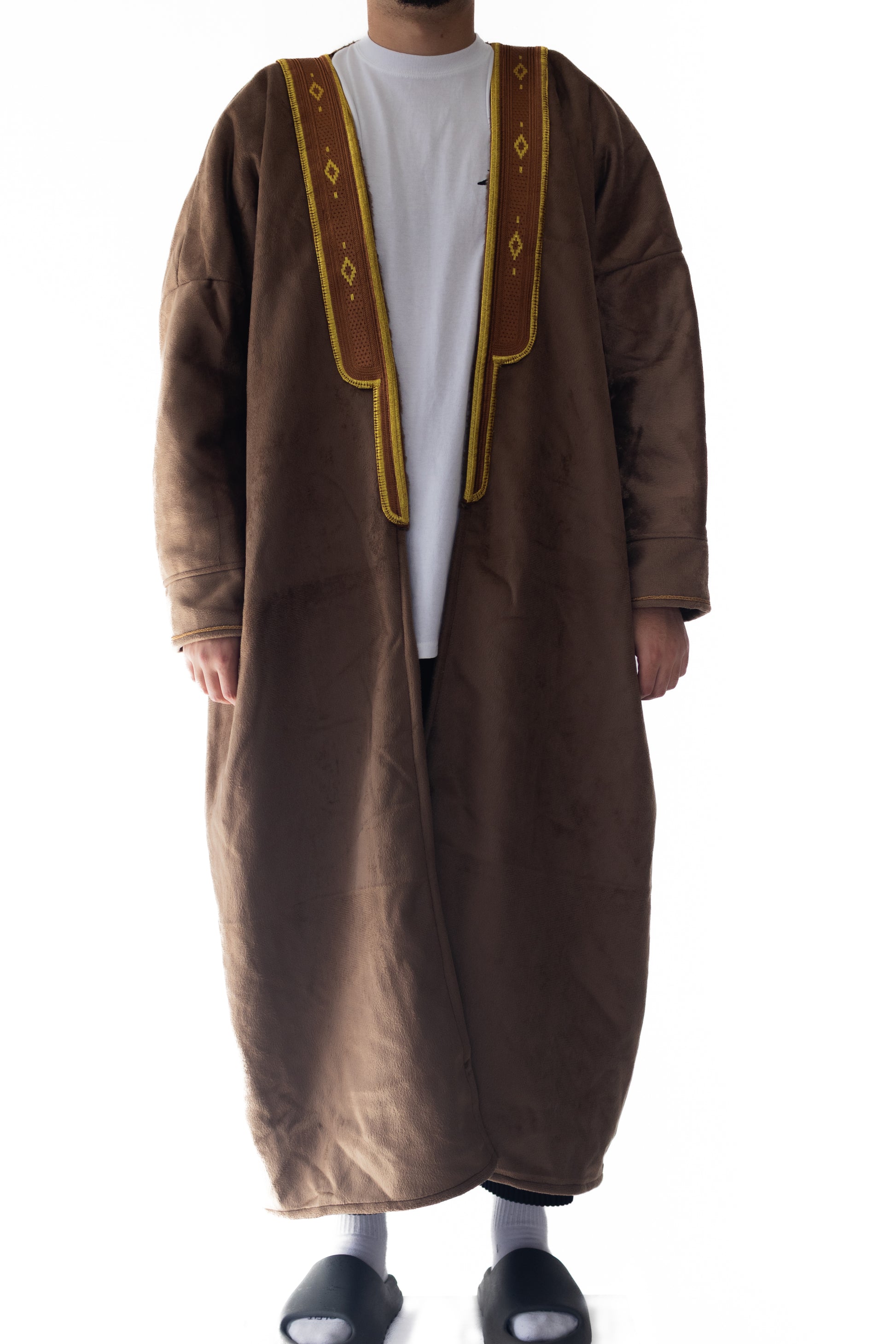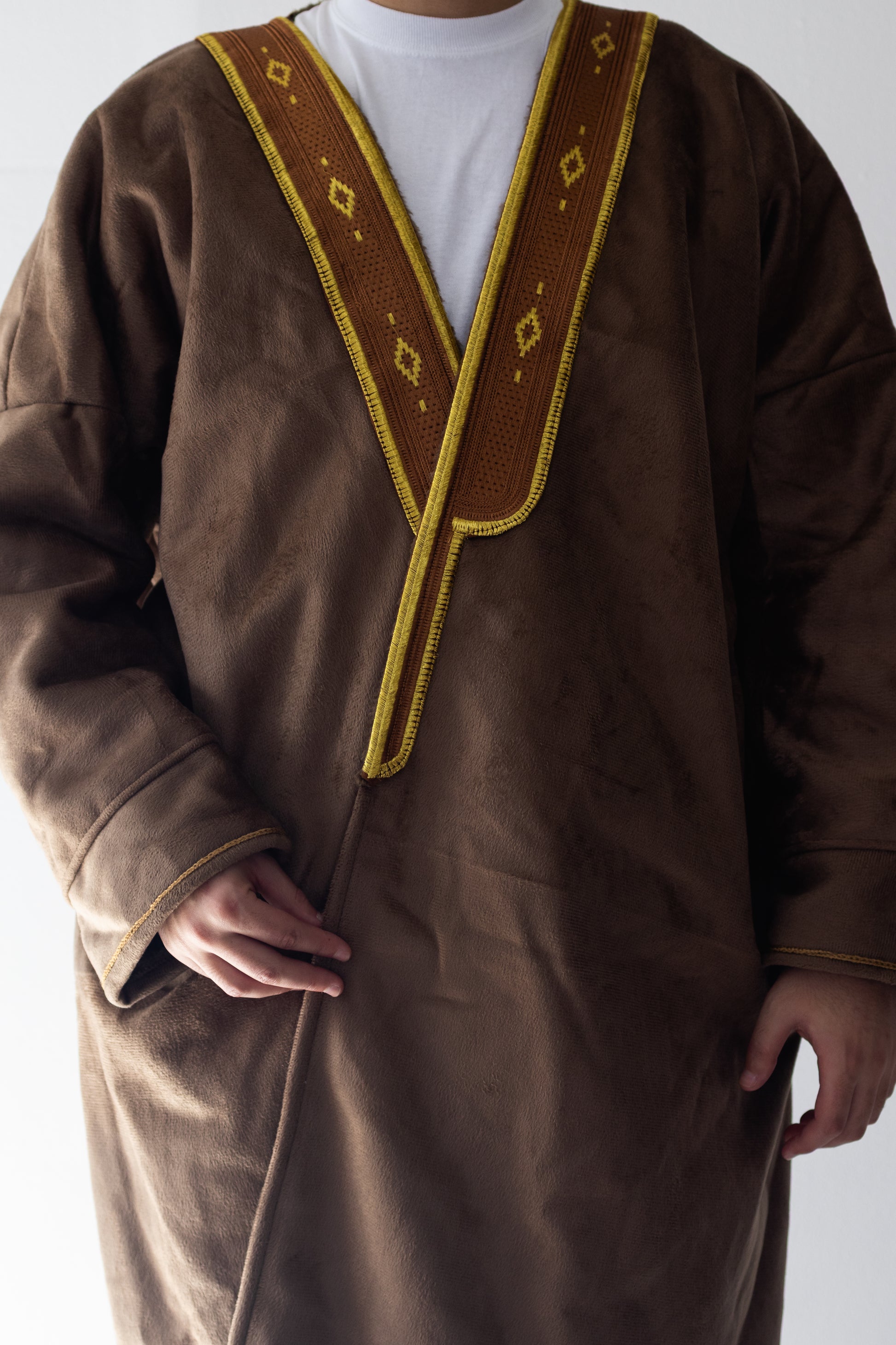Meet Bishti, inspired by the Saudi Bisht and reimagined as a Farwa with presence. It carries that ceremonial, elevated feel through its clean front opening and statement trim detailing, while keeping the comfort and warmth you expect from a winter staple.