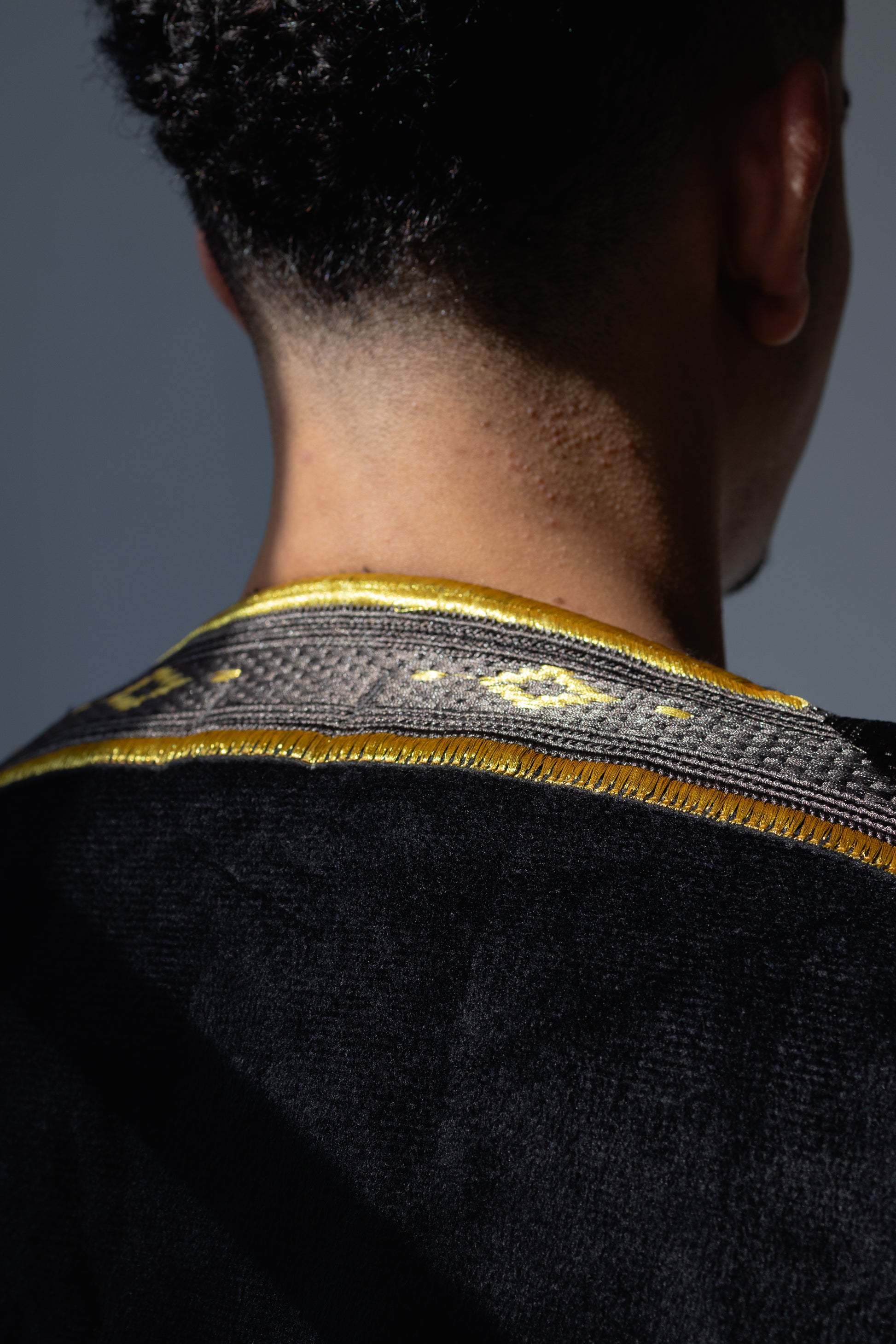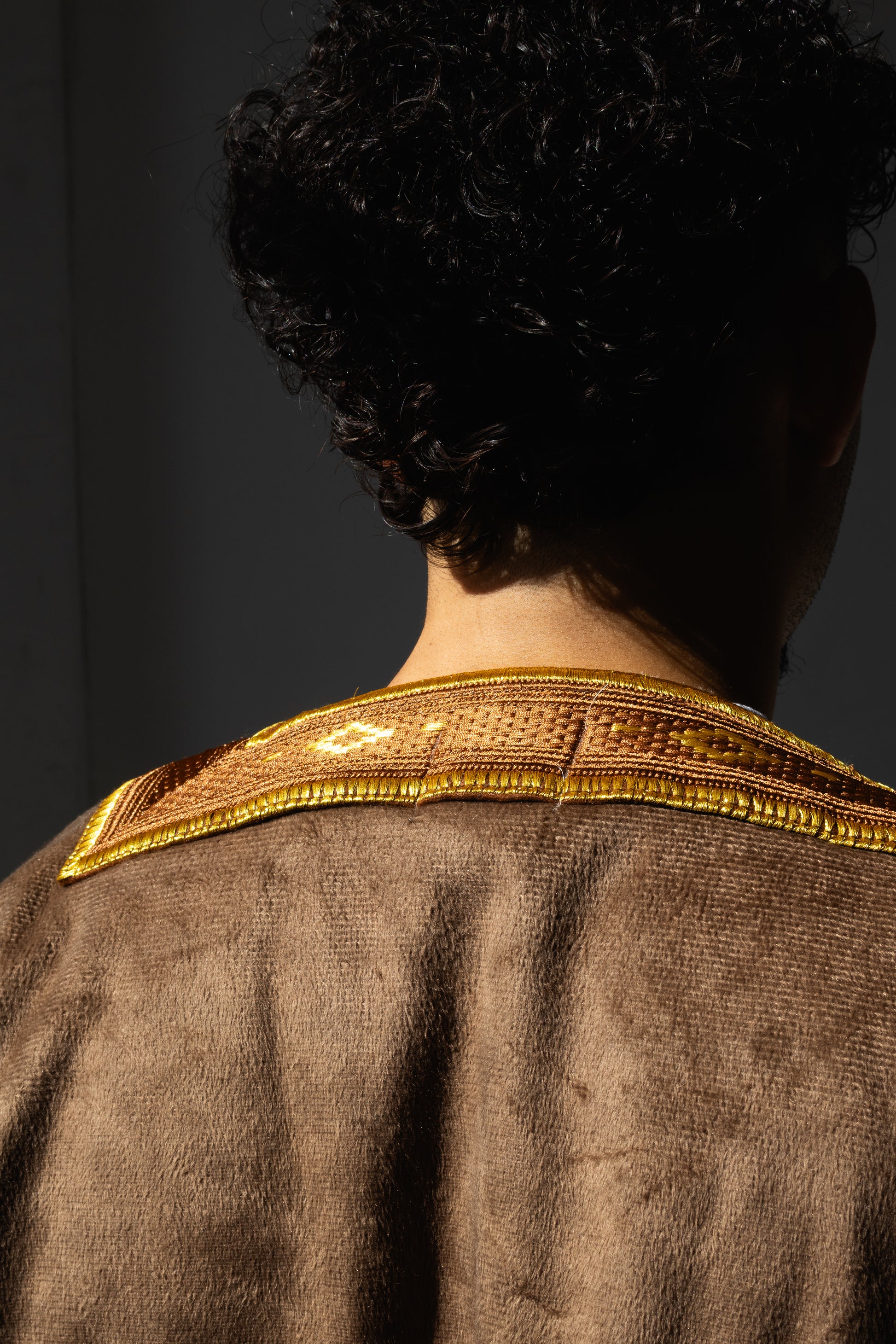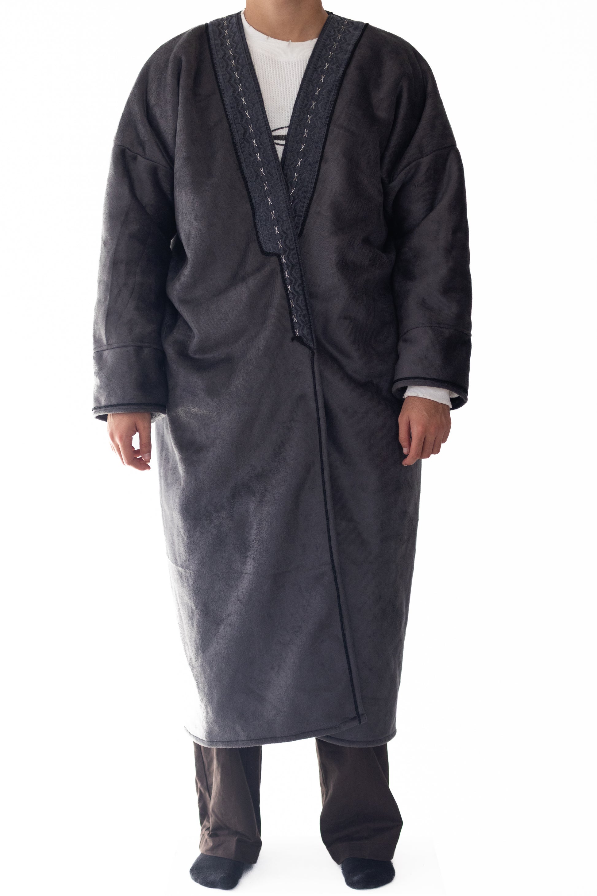 Meet Bishti, inspired by the Saudi Bisht and reimagined as a Farwa with presence. It carries that ceremonial, elevated feel through its clean front opening and statement trim detailing, while keeping the comfort and warmth you expect from a winter staple.